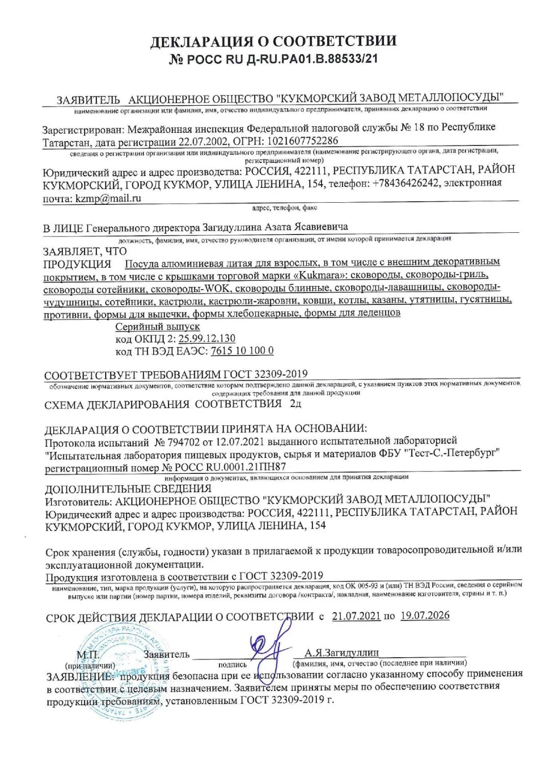 Декларация на посуду из нержавеющей стали ООО Расплав