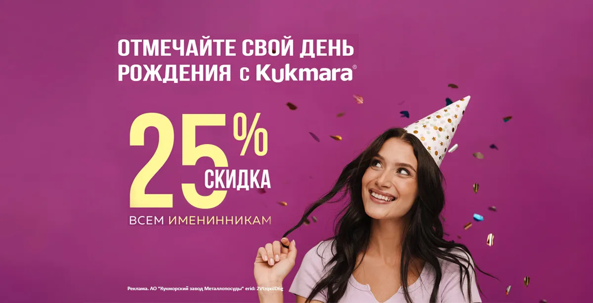 Каждый покупатель интернет-магазина Kukmara получает промокод с 25% скидкой на день рождения!